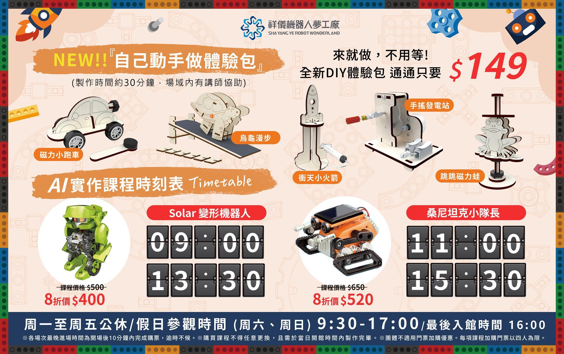 這裡不只是展示機器人的場館,而是一座以「動手學科技」為核心概念打造的親子友善空間,讓孩子在遊玩中接觸 STEM 教育,將抽象的科學原理轉化為具體、有趣的體驗。體感互動的機器人、入館即可參加的DIY體驗包,再到由講師一步步教學製作的AI實作課程,讓孩子「學中玩、玩中學」!收穫滿滿的一日探險。