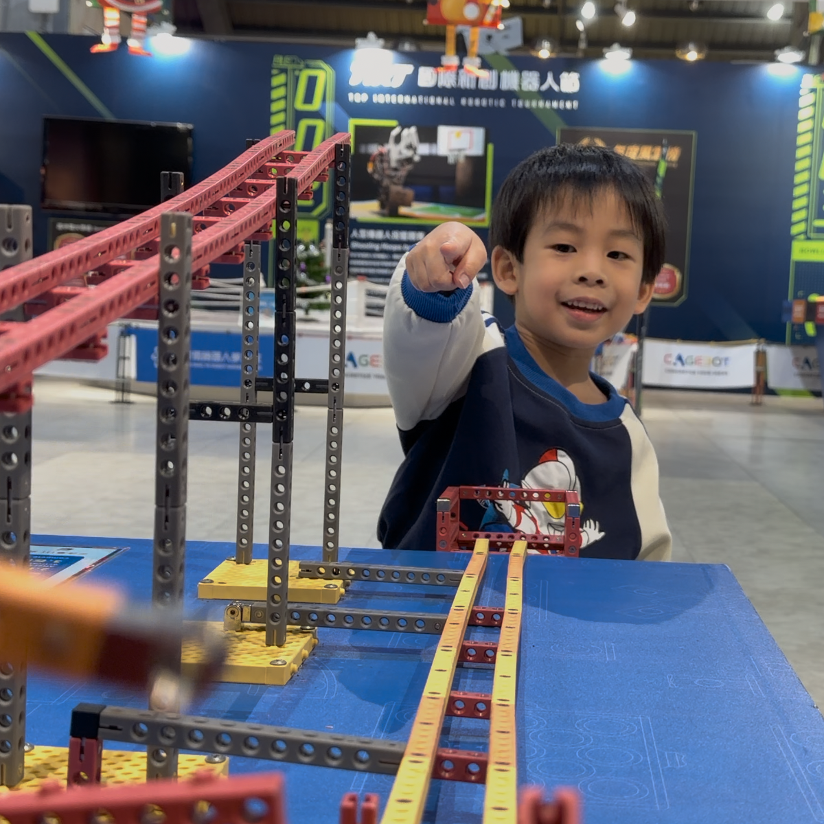 互動體驗區集結多項互動體驗設施,讓孩子化身小小工程師。從運用槓桿原理的投石裝置、操控滾球機台,到啟動已輸入循跡程式的車體完成路線挑戰;還能與體感互動機器人互動,甚至操縱人氣最高的格鬥機器人熱血對戰。現場更有親切的工程師協助指導,不用擔心操作困難。透過實際動手、即時觀察反應,孩子在玩樂中理解機器如何接收指令並產生動作,深入感受科技運作的邏輯,體驗真正寓教於樂的「動手玩科技」。